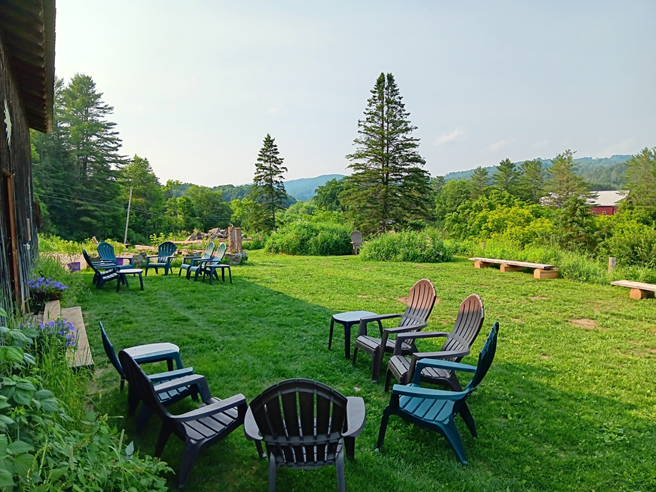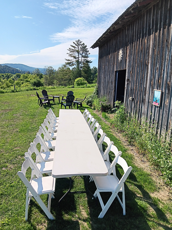 The lush lawn on the northern side of barn has afternoon shade. The furniture setup can by customized for your event.